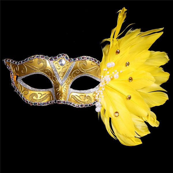 New Plastic With Feather Womens Elegant Masquerade Party Masks