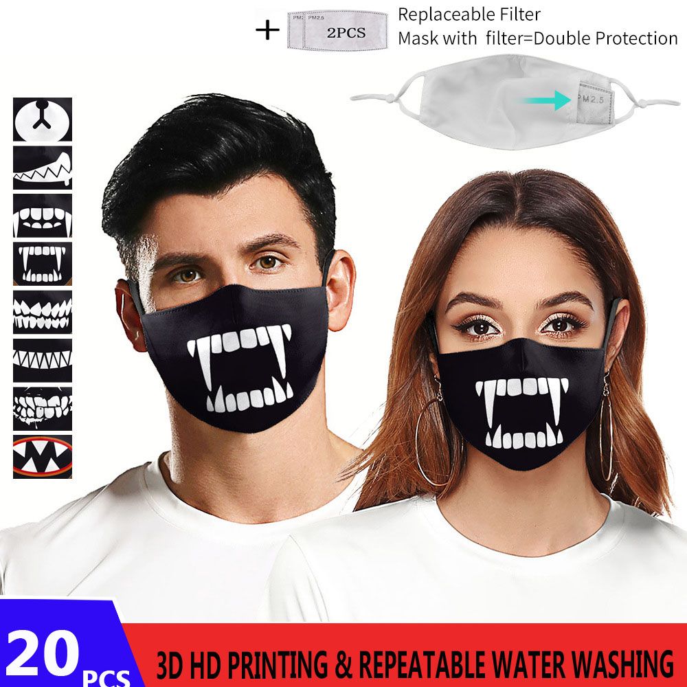 2020 3d Hd Printing Sharp Teeth Big Mouth Pattem Face Mask