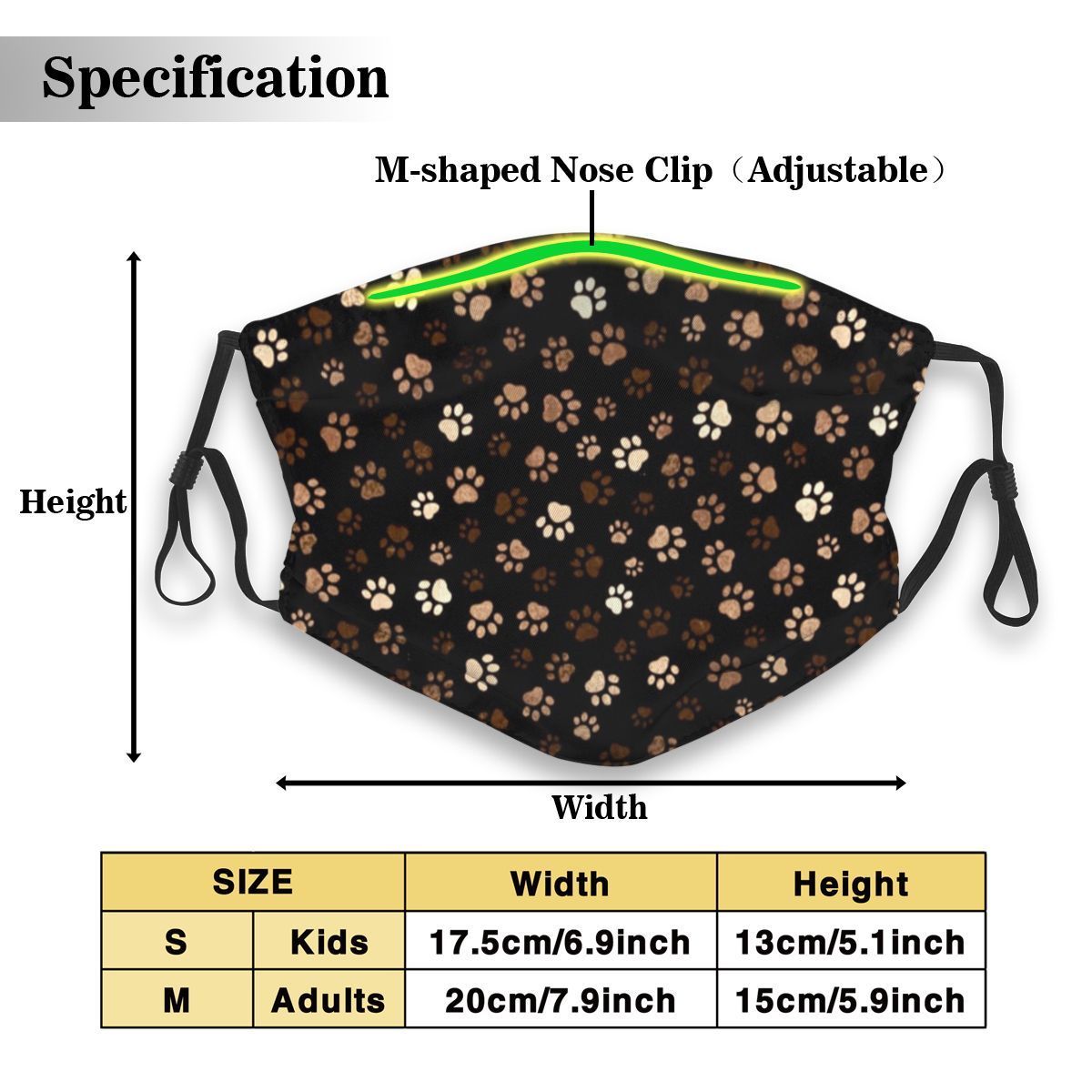 Paw Print Face Mask With Dog Design